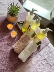 Il se réalise avec la préparation d’huiles végétales et d’huiles essentielles bien spécifiques durant les différentes phases du massage, avec pour objectif :